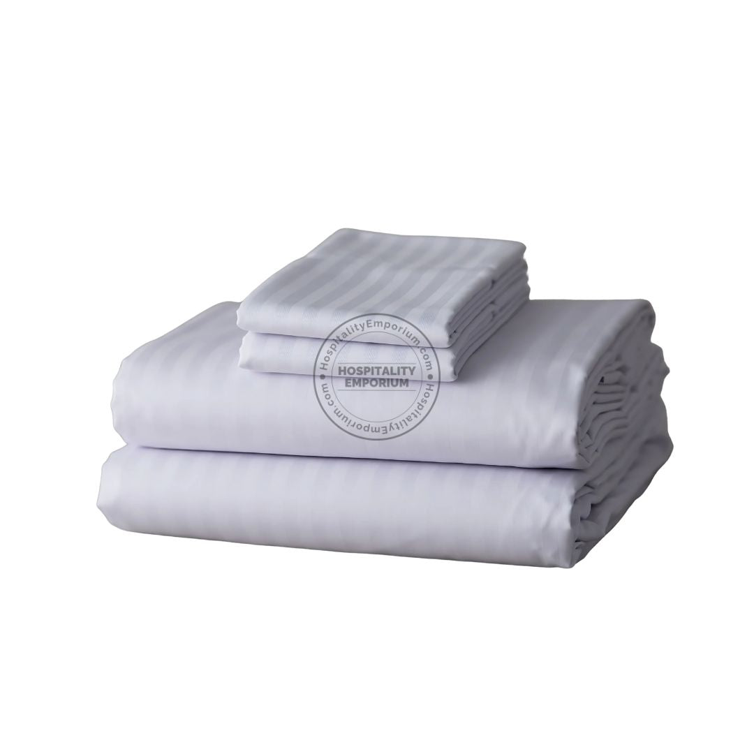TC-310 FLAT SHEETS STRIPED 6mm Luxury WHITE KING bed size 114 x 120 Thomaston Mills
