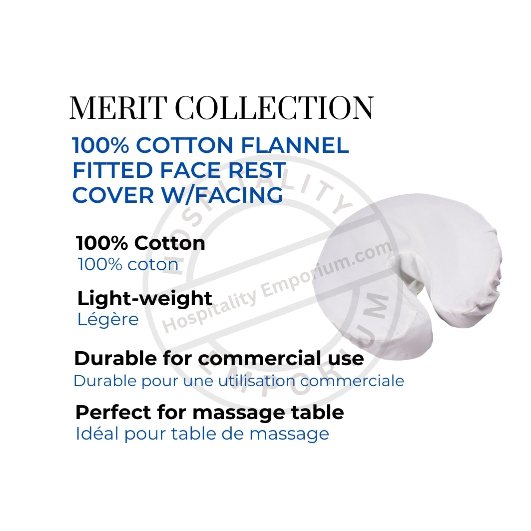 100% Cotton Flannel Fitted Face Rest Cover w/Facing, Color White/Nautral 12/Pack
