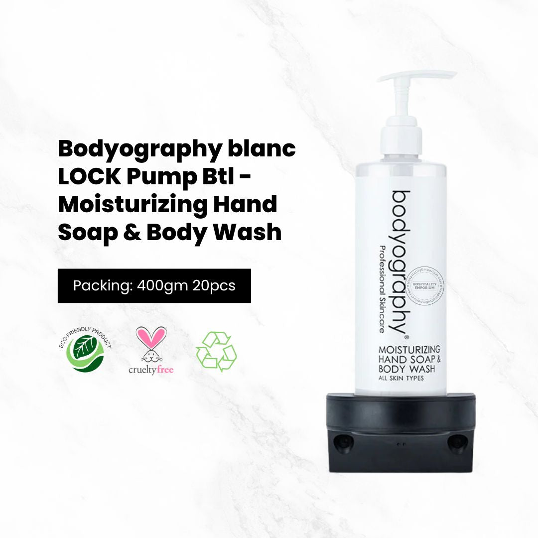 Bodyography Blanc LOCK Pump Bottle for Moisturizing Hand Soap & Body Wash offers a convenient and efficient way to dispense your favorite hand soap or body wash. The locking pump mechanism prevents spills and ensures controlled dispensing, making it ideal for home, salon, or travel use. With its durable design and ergonomic functionality, it’s a practical solution for everyday use.