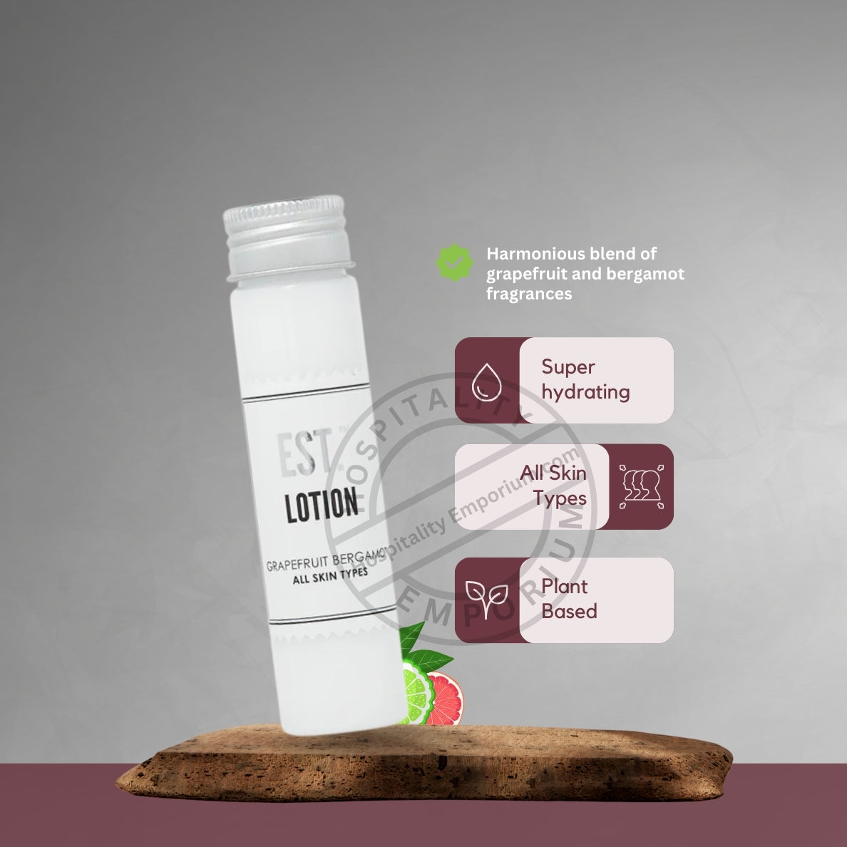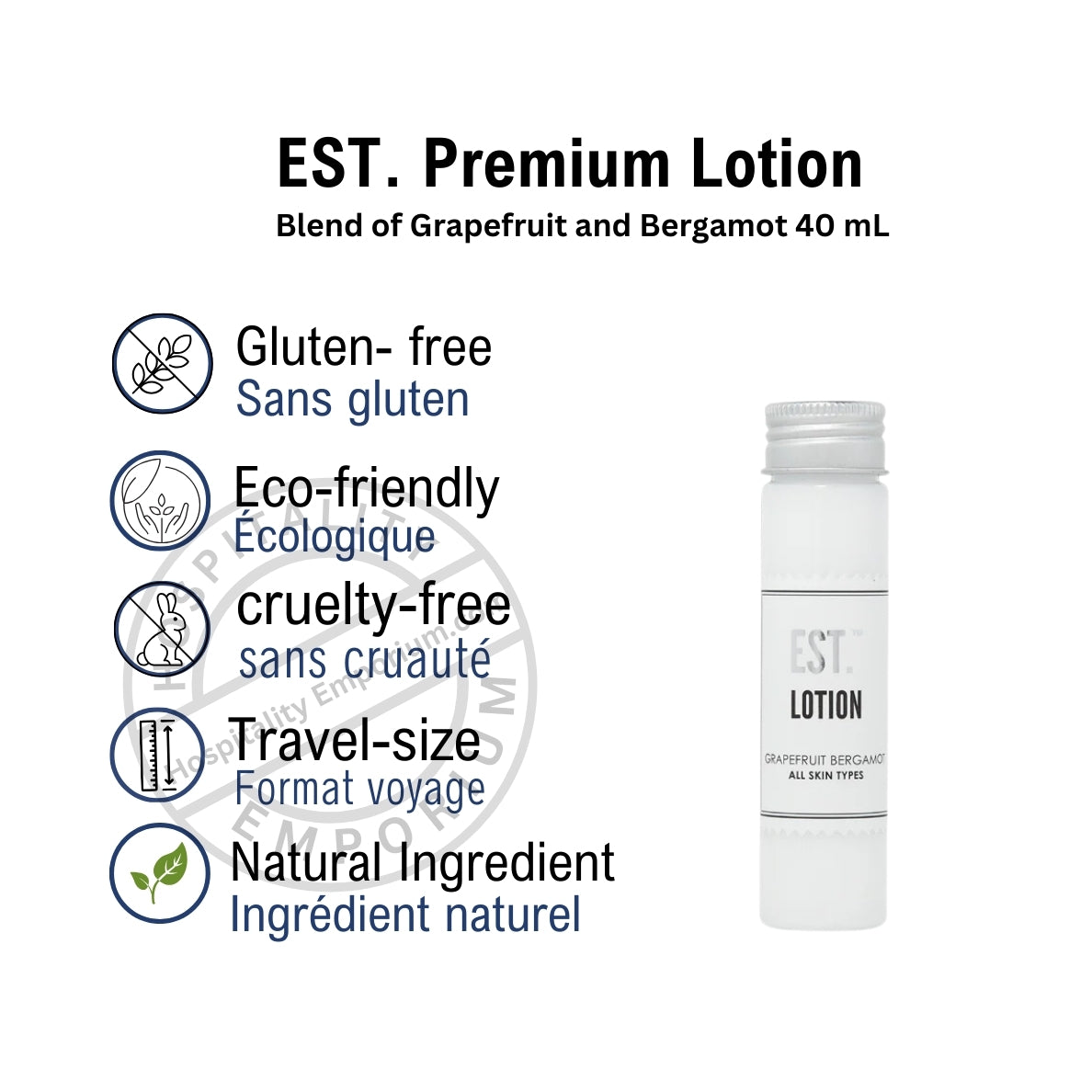 Elevate your skincare routine with EST. Premium Lotion. Embrace the essence of luxury with our globally recognized brand, featuring a chic, modern design and a delightful blend of grapefruit and bergamot fragrances suitable for all genders. EST. embodies timeless elegance, proving that refined taste never goes out of style.