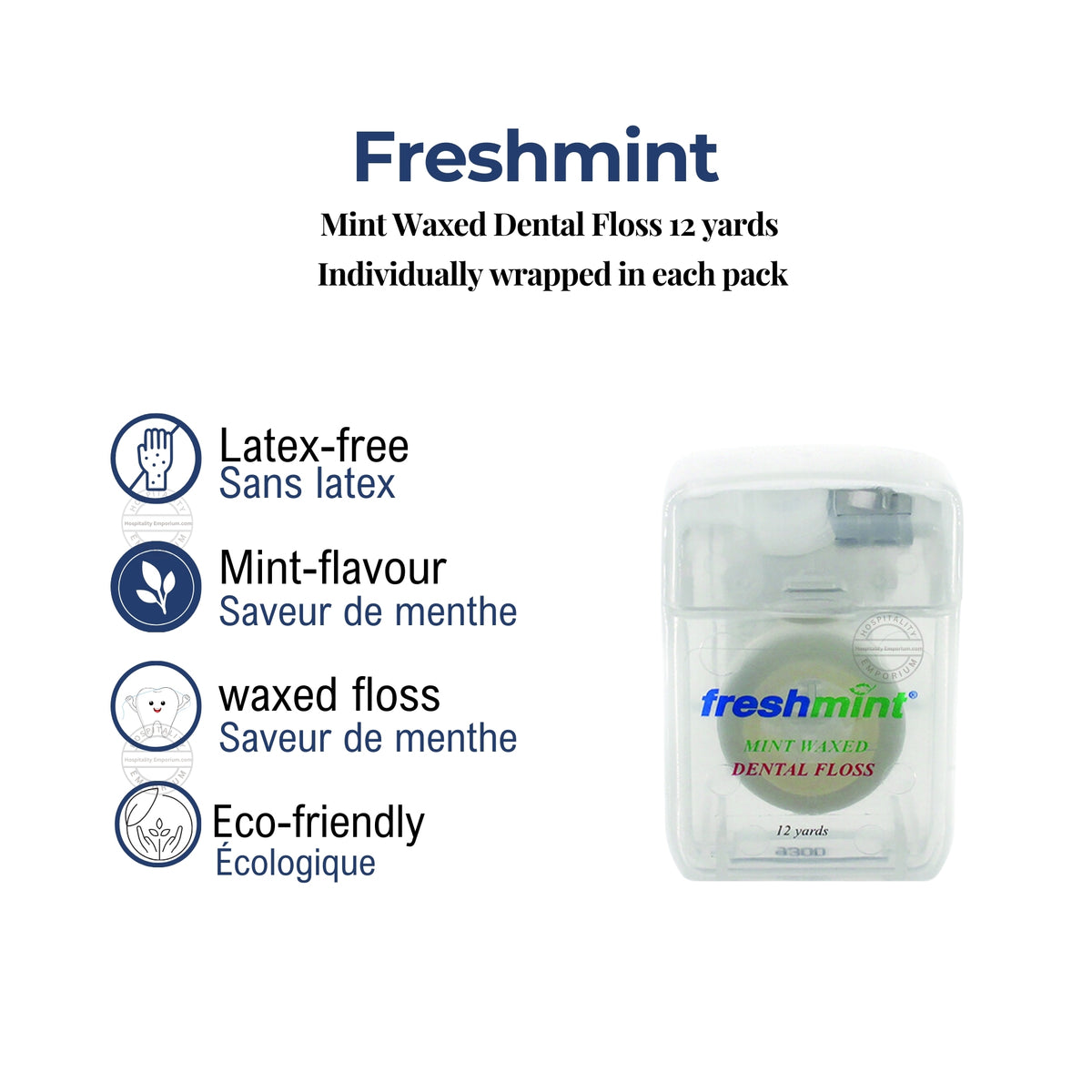 Give your oral care routine a boost with Freshscent Waxed Dental Floss. Infused with a burst of mint flavor, this floss not only cleans between teeth but also leaves your mouth feeling fresh and rejuvenated. With eco-friendly packaging and individually wrapped for convenience, each pack contains 144 units, ensuring you always have enough for your oral hygiene needs. Use as directed to effectively remove plaque that brushing may miss, promoting a cleaner, fresher mouth and a healthier smile.