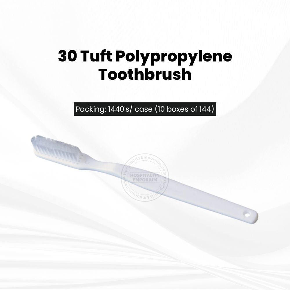 The 30 Tuft Nylon Toothbrush is designed for effective oral care with its 30 tufts of soft, durable nylon bristles. These bristles gently clean teeth and gums, removing plaque and promoting good oral hygiene. The toothbrush features an ergonomic handle for a secure and comfortable grip, making it ideal for daily use.