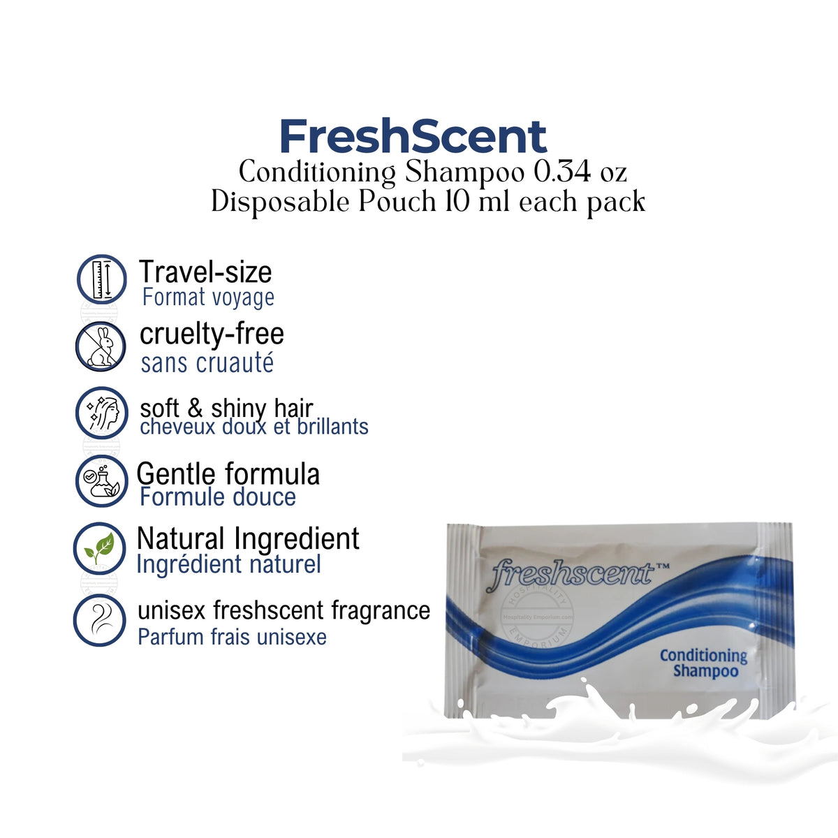 • Each pouch contains 10 ml of Freshscent Conditioning Shampoo