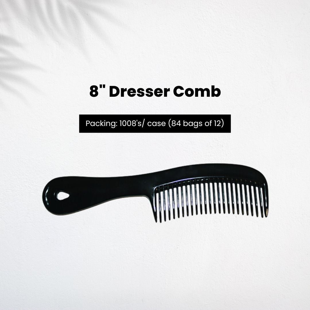 The 8" Dresser Comb is a versatile and durable grooming tool designed for everyday styling and detangling. Its longer length makes it ideal for working through longer hair, while the fine-toothed design ensures smooth and precise styling. Made from high-quality plastic, this comb provides a comfortable grip and control, making it suitable for both personal and professional use.