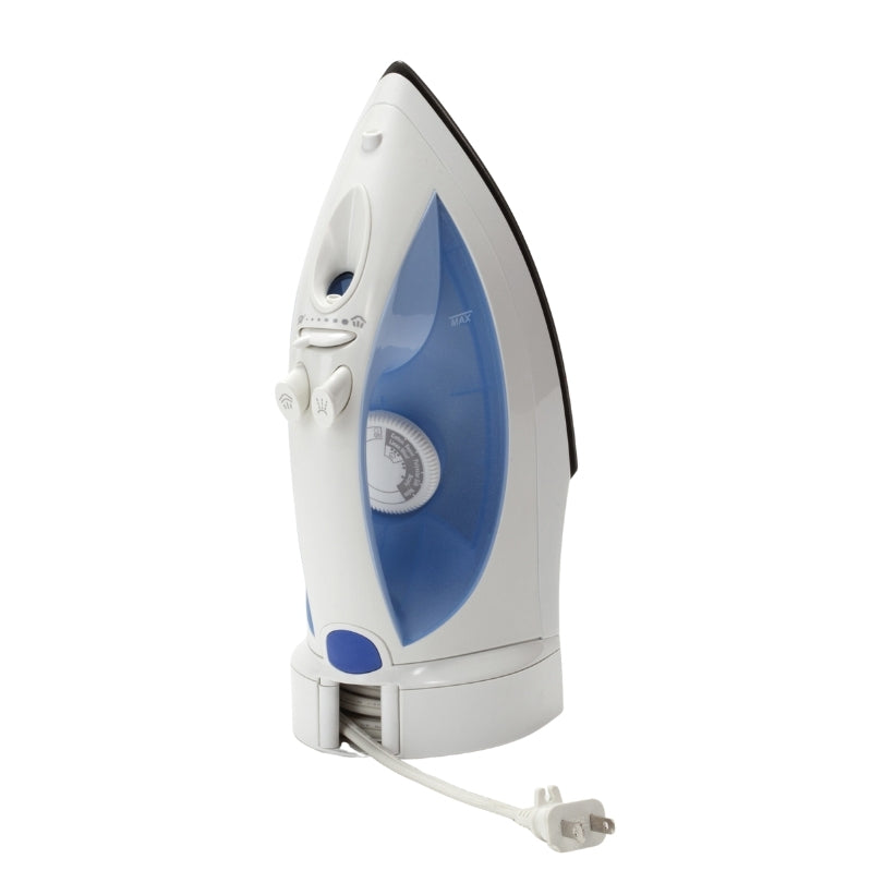 This sleekly designed Hamilton Beach Commercial® hospitality iron features a retractable cord and two steam options to allow guests to choose the right option for their garment. The powerful blast is a must for natural fabrics such as cotton or linen and the vertical steam is perfect for use on hanging clothes. The position-sensing auto shutoff turns the iron off in 30 seconds if the iron rests on its face or side. It shuts off in 15 minutes if the iron is resting upright on its heel.