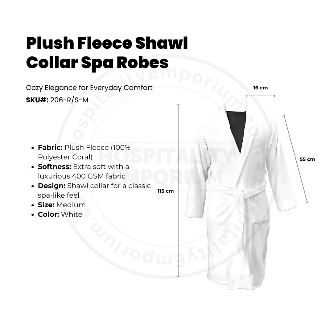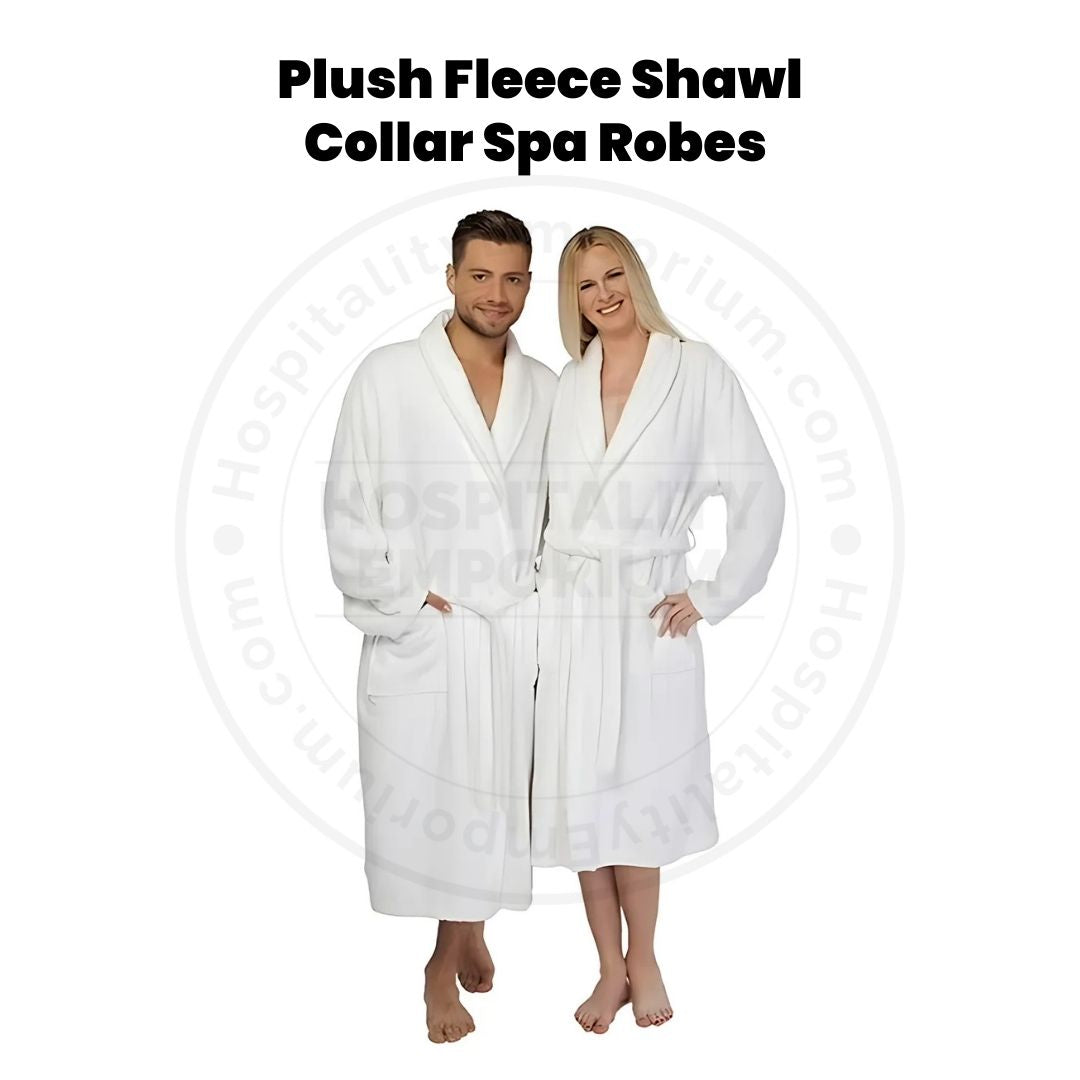 Indulge in luxurious comfort with our Plush Fleece Spa Robe. Crafted from ultra-soft 100% polyester micro fleece, this shawl collar robe provides unmatched coziness and absorbency, making it perfect for post-shower relaxation, lounging by the pool, or unwinding in the sauna. Designed for both men and women, this versatile robe offers spa-like comfort whether you're at home or away.