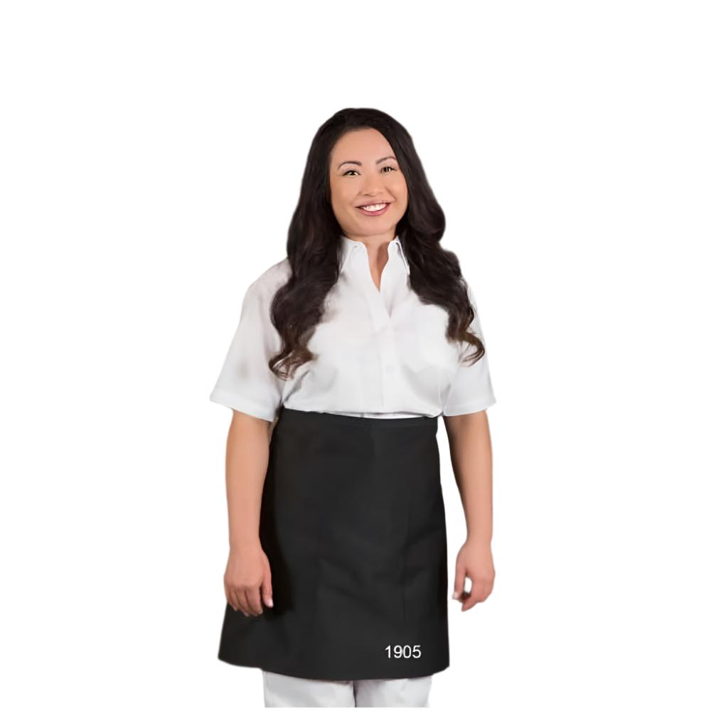 The Premium Short Bistro Apron is designed for those who need a functional yet stylish apron in the culinary or hospitality industry. This apron combines durability with a sleek appearance, making it an excellent choice for various professional settings.