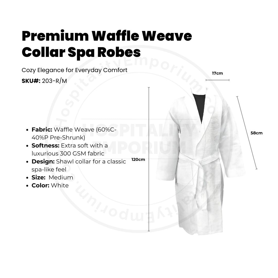 Indulge in the ultimate comfort with our Waffle Weave Spa Bathrobe. Crafted from a blend of 60% cotton and 40% polyester, this bathrobe offers a lightweight and breathable design that is perfect for lounging at home or unwinding at the spa. Whether you're stepping out of the shower or lounging by the pool, this super-absorbent bathrobe provides unparalleled softness and comfort.