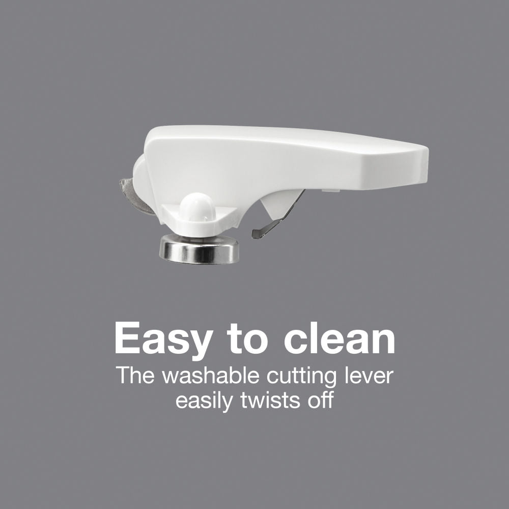 The Proctor Silex® Power Opener™ Can Opener is easy to clean with a washable cutting lever that easily twists off.