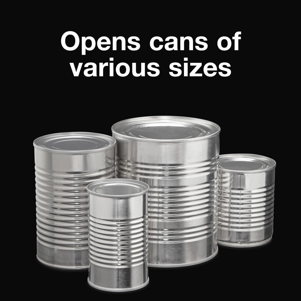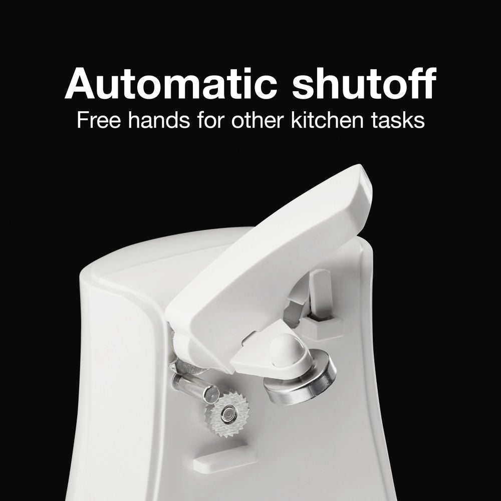 Besides being easy to use, this electric can opener also has a convenient auto shutoff feature to free your hands for other kitchen tasks. This electric can opener is versatile and designed to open many different size cans.