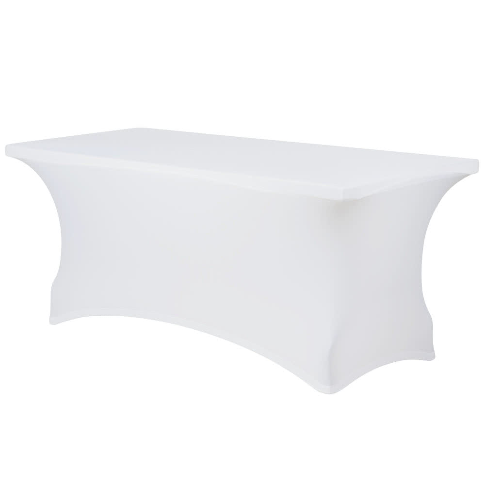 Create a sleek and stylish look at your restaurant, casino, or catered event with this 72" x 30" spandex table cover! Made up of spandex fabric, this cover stretches in 4 ways to easily expand over most 72" by 30" rectangular tables. Plus, unlike traditional linens, it fits snugly to eliminate wrinkling without needing to be ironed. It can also be machine washed and dried for fast, effortless cleaning.