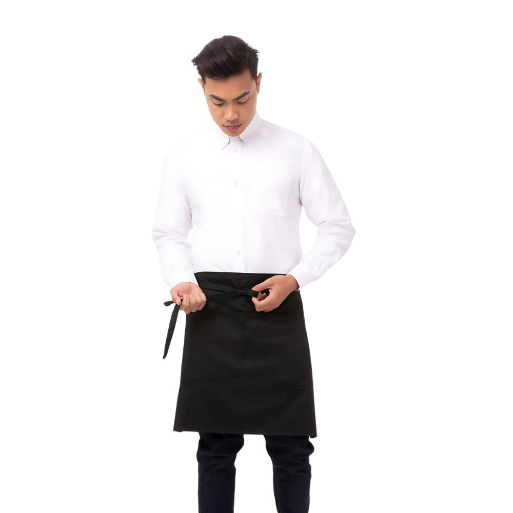 • Additional Features: Lightweight and breathable fabric ensures comfort during long shifts. The apron is resistant to wrinkles and quick-drying, which allows for a clean and crisp look throughout the day.