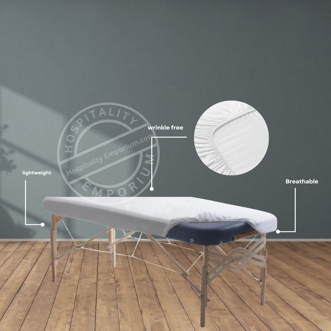 Diamond Weave Poly-Cotton fitted sheets are high quality and comfortable. The cotton provides softness and lets the sheets breath while the polyester makes them wrinkle free, easy to care for and long-lasting, Superior quality and durable construction. Machine wash and dry. This sheet made especially for professional massage tables includes a fully elastic fitted sheet, Naturally cool cotton.